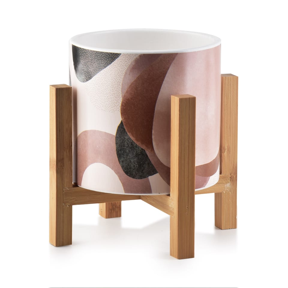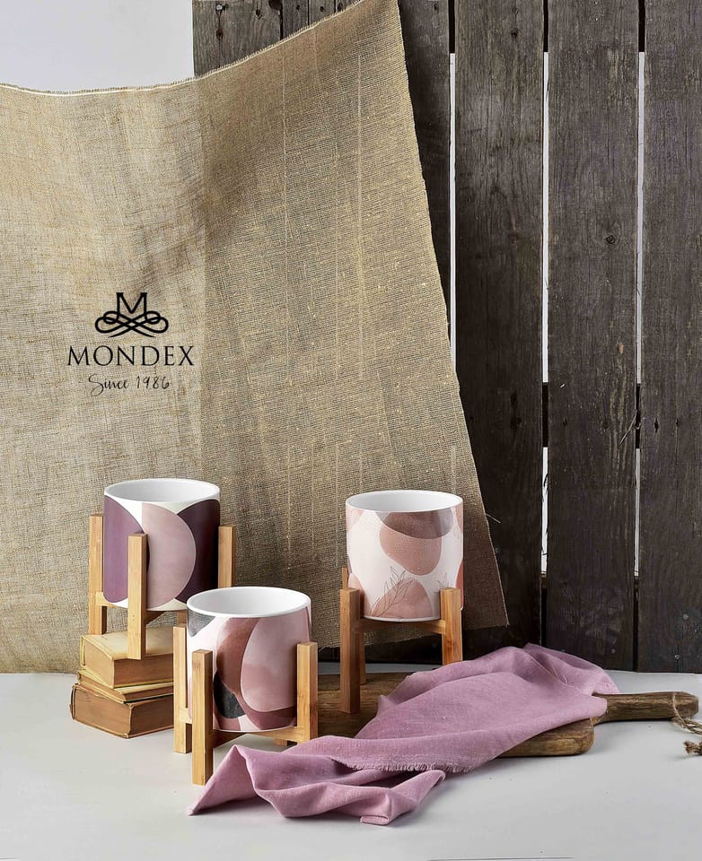 Ceramiczna osłonka z serii AVA na drewnianym stojaku marki MONDEX. Idealnie sprawdzi się do eksponowania kwiatów w każdym pomieszczeniu. wymiary samej doniczki: średnica: 12,5 cm wysokość: 11,7 cm wymiary razem ze stojakiem: długość: 16,2cm szerokość: 16,2 cm wysokość: 16,5 cm wymiary stojak: szerokość:12.5cm wysokość :13cm white box