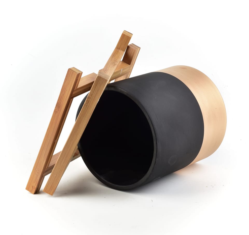 Doniczka ceramiczna na drewnianym stojaku z serii AVA marki MONDEX. Świetne uzupełnienie każdego wnętrza. Trend na rośliny we wnętrzach dosłownie rozkwita, nasza linia doniczek świetnie go uzupełni. wymiary samej doniczki: średnica: 18 cm wysokość: 20 cm wymiary razem ze stojakiem: długość: 18 cm szerokość: 18 cm wysokość: 40 cm