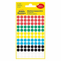Avery Zweckform etykiety 8mm, kolorowe, 104 etykiety, do znakowania, zdejmowane, pakowane po 4 szt., 3090, do pisma odręcznego