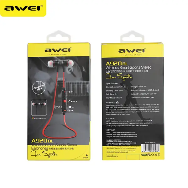 AWEI A920BL profesjonalne słuchawki stereo Bluetooth o doskonałym dźwięku HD i komforto-wym dopasowaniu, zapewnią Ci pełną koncentrację podczas treningu.