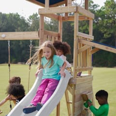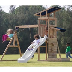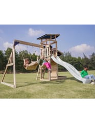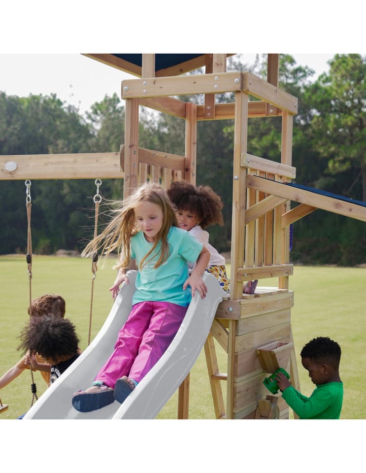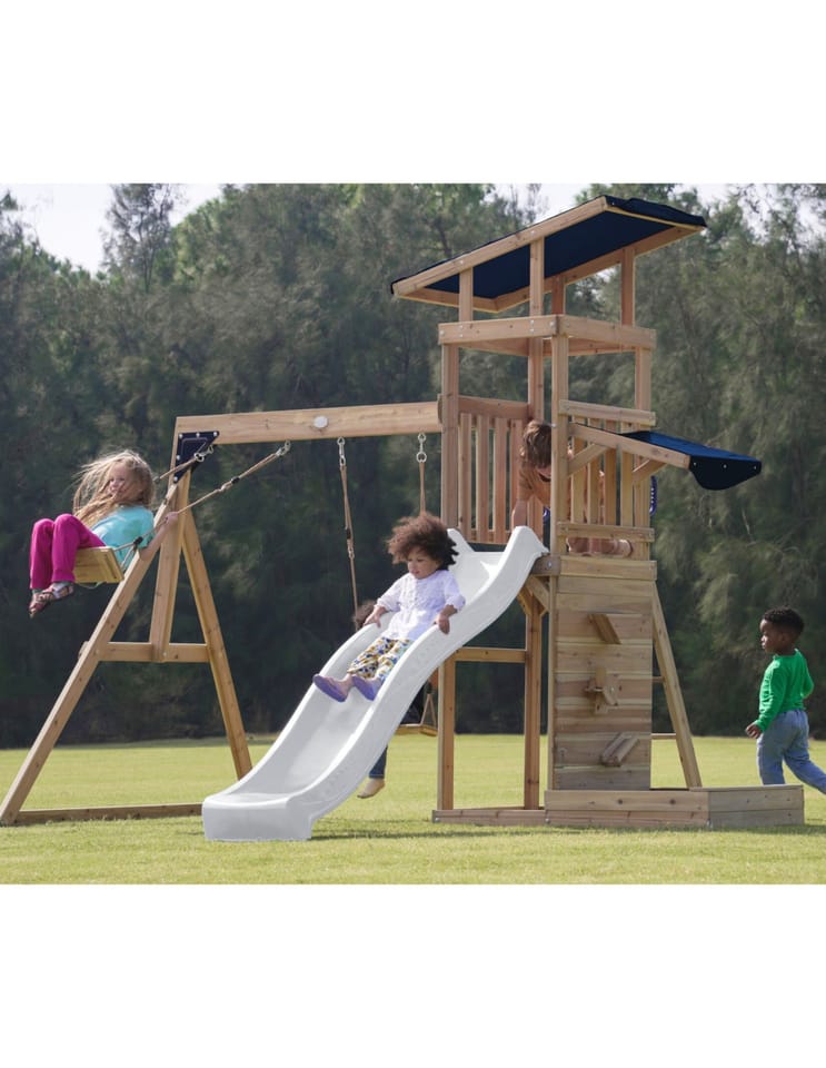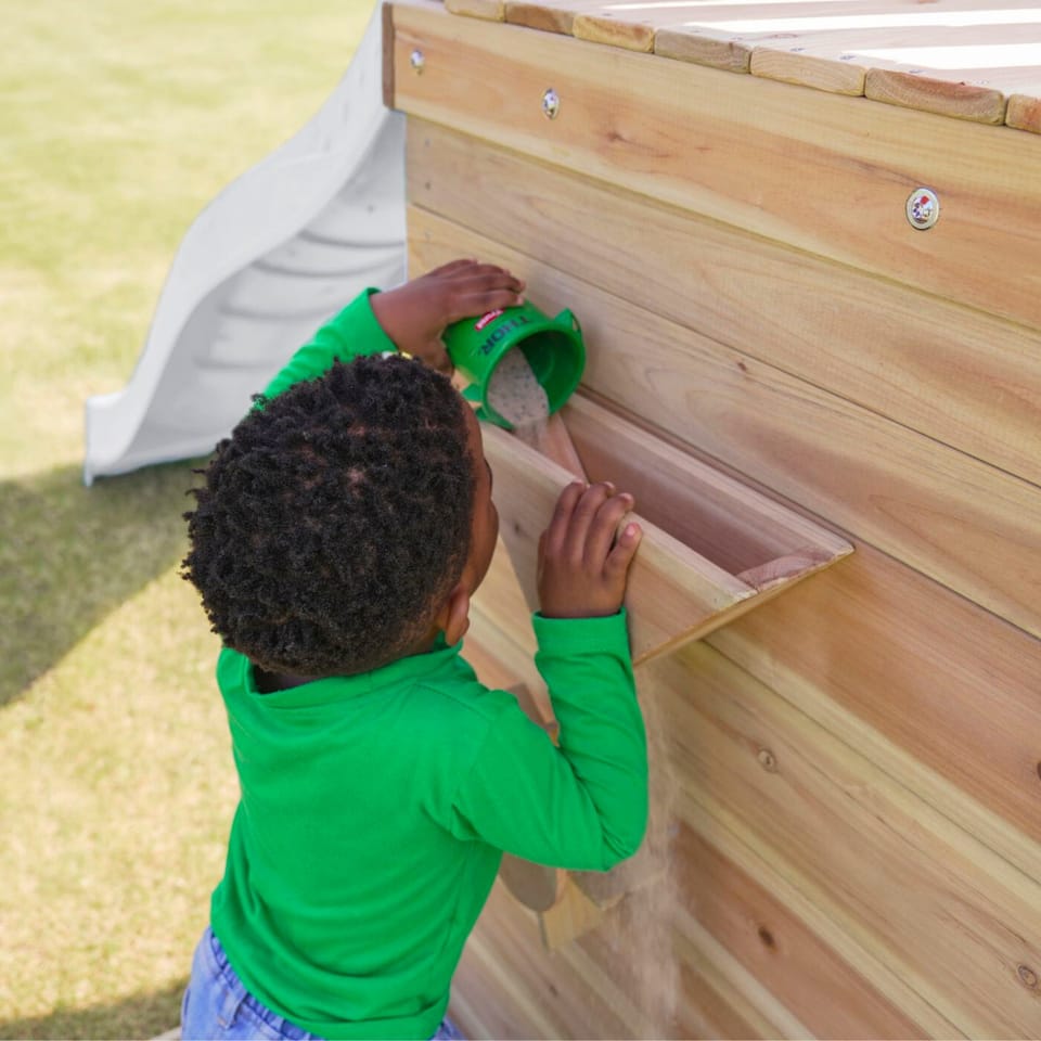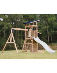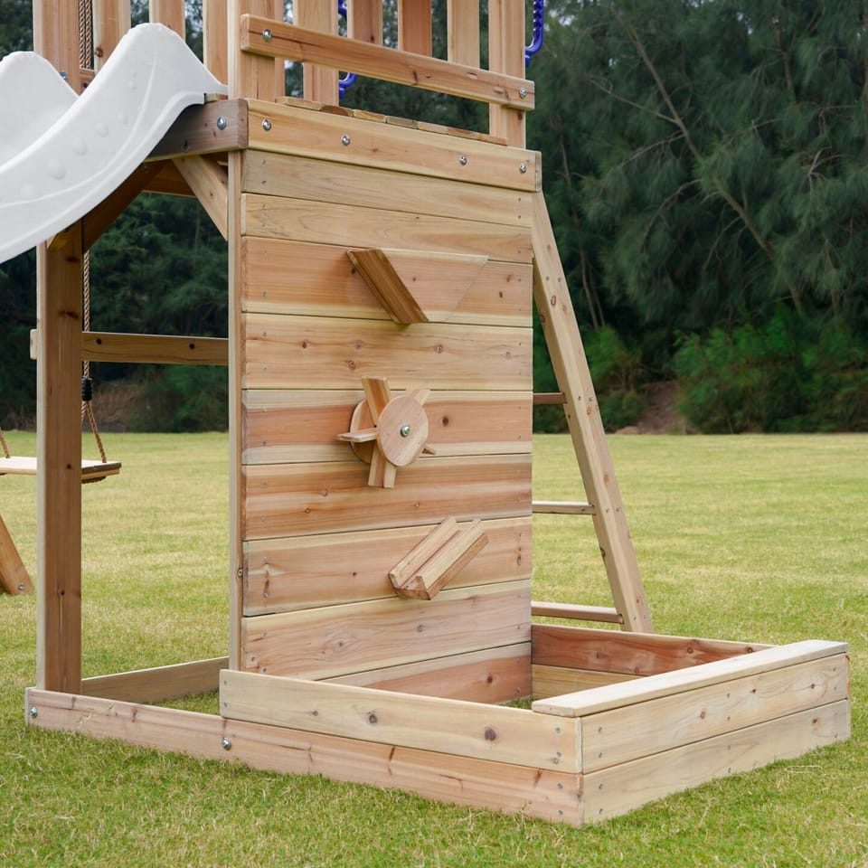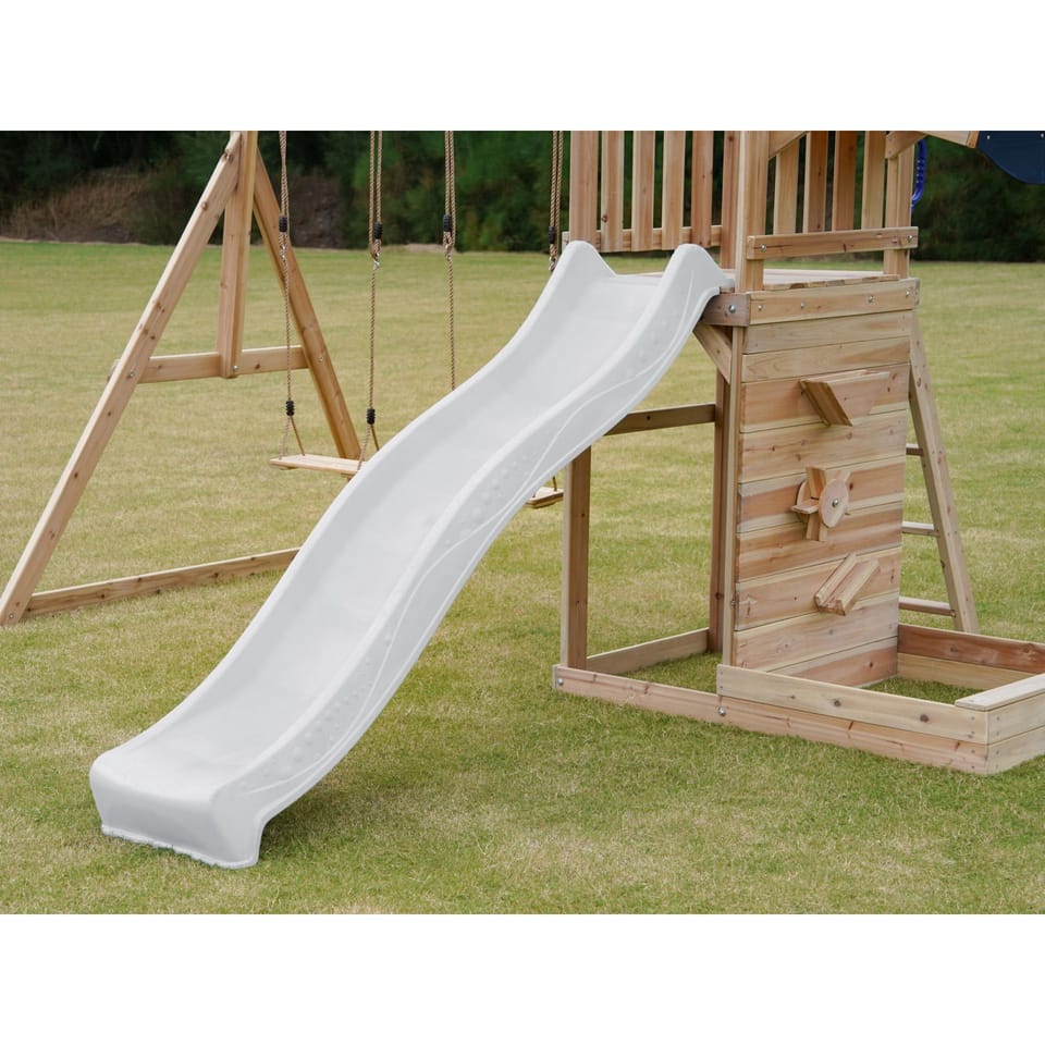 - Wielofunkcyjny zestaw do zabawy – wspinaczka, zjeżdżanie, huśtanie się i zabawa w piasku w jednym miejscu! - Podwójna huśtawka - Długa 220 cm zjeżdżalnia z możliwością podłączenia wody dla dodatkowej frajdy w upalne dni - Piaskownica z daszkiem i ścianką do zabawy - Bezpieczna i stabilna konstrukcja – zestaw posiada 6 kotew gruntowych dla maksymalnej stabilności - Zestaw przeznaczony dla maksymalnie 5 dzieci ( Maksymalna waga na dziecko: 50 kg ) - Łatwy montaż – proste instrukcje i częściowo wstępnie zmontowane elementy pozwalają na szybkie złożenie placu zabaw.
