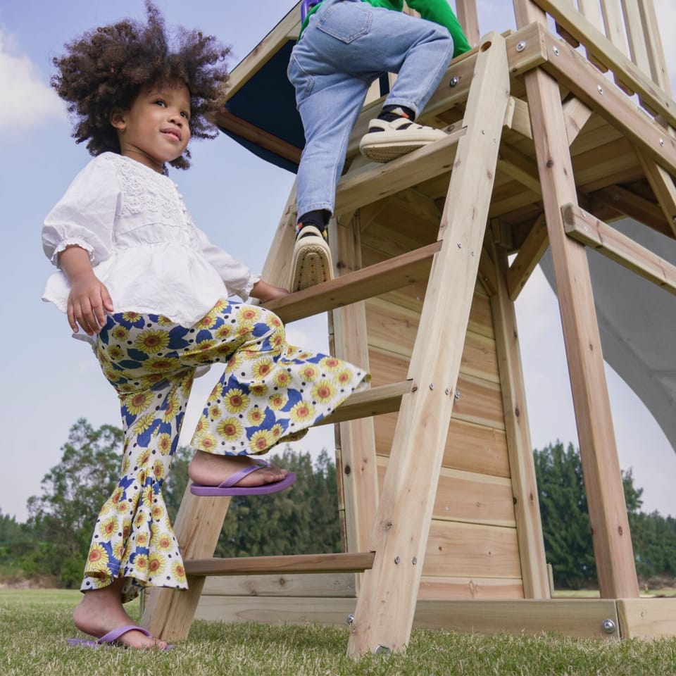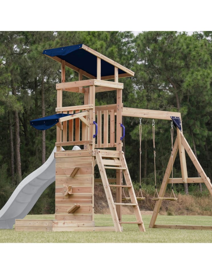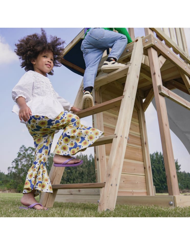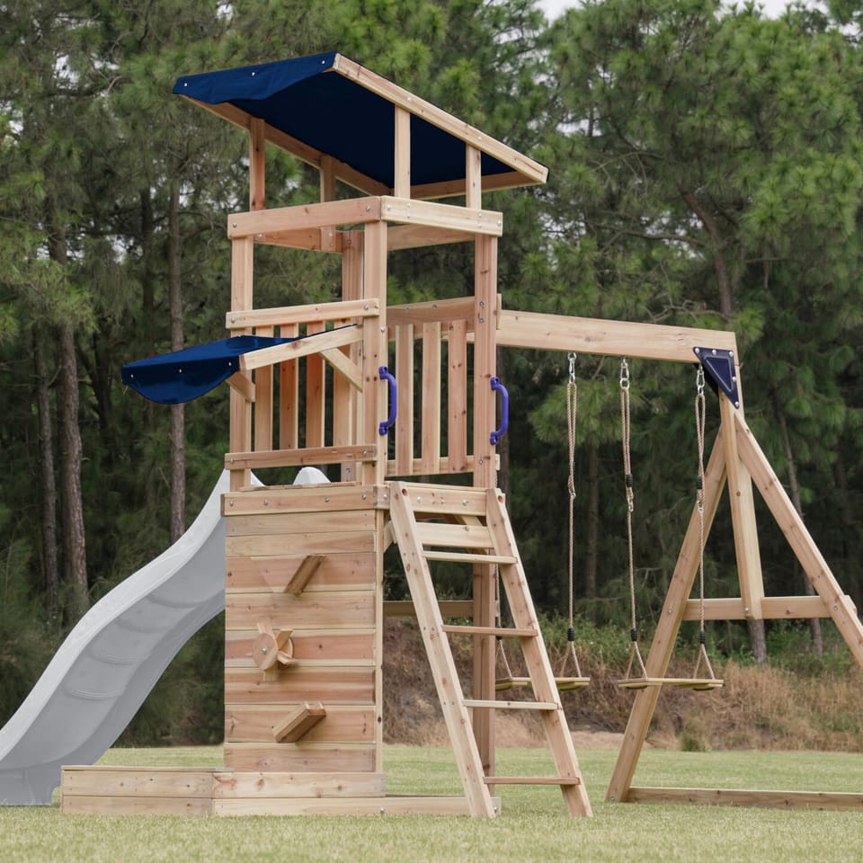 ✔ Dzięki różnorodnym elementom – wieży widokowej, długiej zjeżdżalni, podwójnej huśtawce i piaskownicy – dzieci mogą rozwijać swoją kreatywność, siłę i koordynację ruchową w jednym miejscu!