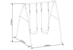W zestawie znajdują się 4 kotwy, które zapewniają trwałe mocowanie huśtawki do podłoża. Siedziska zostały wykonane z wysokiej jakości tworzywa odpornego na warunki atmosferyczne oraz promieniowanie UV. Wysokość każdego siedziska można regulować.
