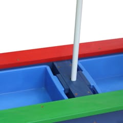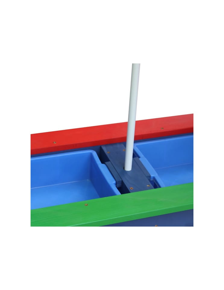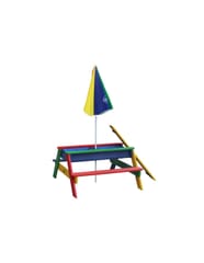 Solidna i trwała konstrukcja zapewnia bezpieczną zabawę na świeżym powietrzu. Do stolika można zamontować parasol, który ochroni przed słońcem.