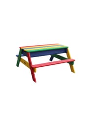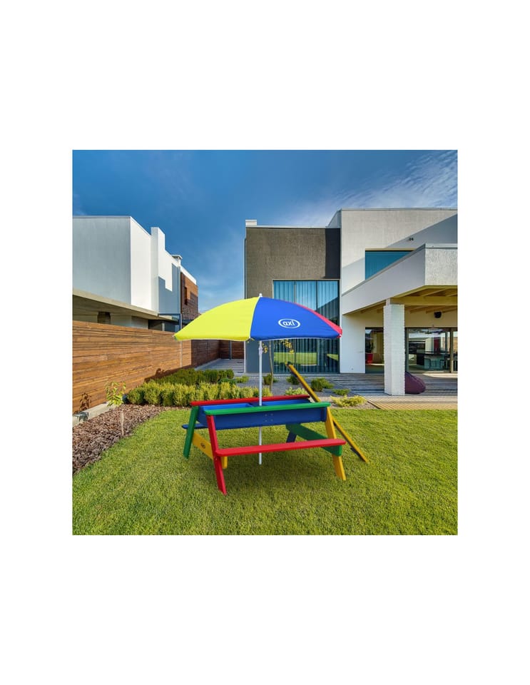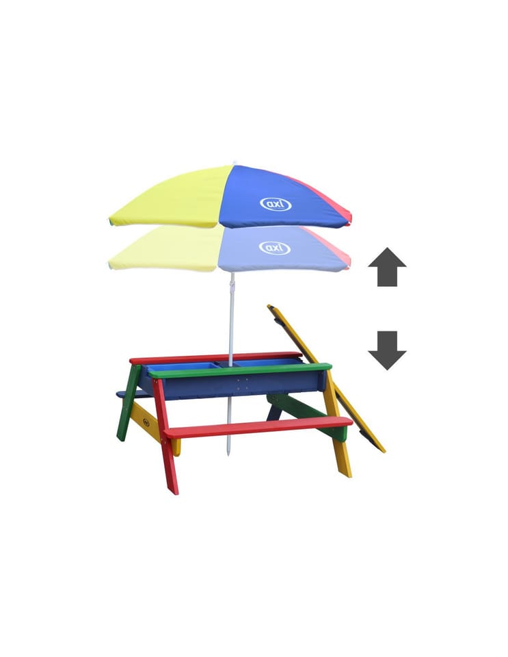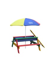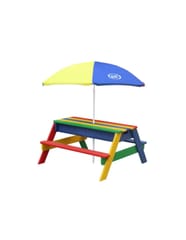 Stolik piknikowy dla dzieci firmy Axi sprawi Twoim pociechom wielką radość. Dzieci mają miejsce, żeby wygodnie usiąść, bawić się i malować. Maluchy będą miały wygodny kącik tylko dla siebie. A jeśli znudzi im się spokojne siedzenie, po zdjęciu blatu stolika, zestaw przeistacza się w piaskownicę lub stolik wodny. Mamy dwie komory, które przystosowane są zarówno do piasku, jak i do wody. Dzięki temu z jednej strony dzieci mogą budować zamki z piasku, a z drugiej mogą bawić się zabawkowymi łodziami. Świetnie sprawdzi się w ogrodzie, na tarasie oraz balkonie.