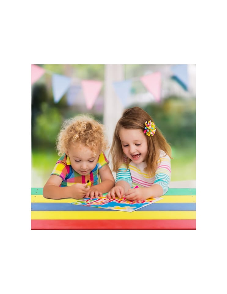 Niewątpliwą zaletą zestawu jest jego kolor - od razu na buzi pojawia się uśmiech. Tęczowy zestaw na pewno zdobędzie uznanie dzieci.