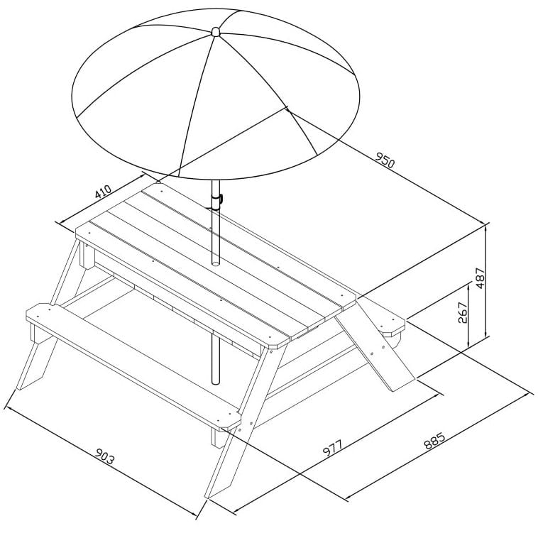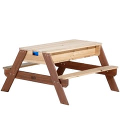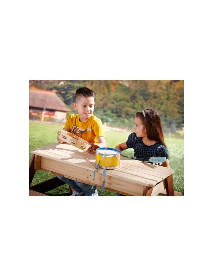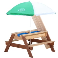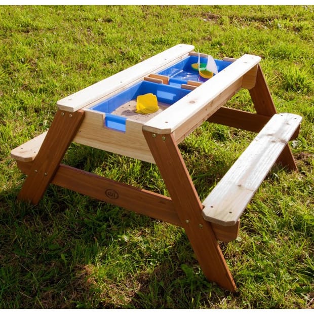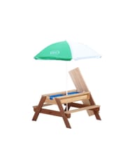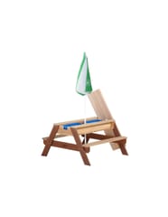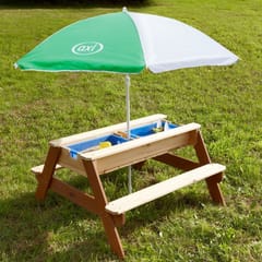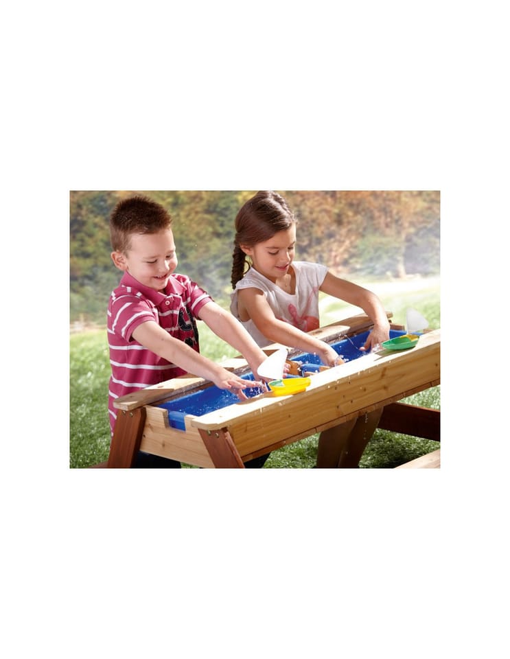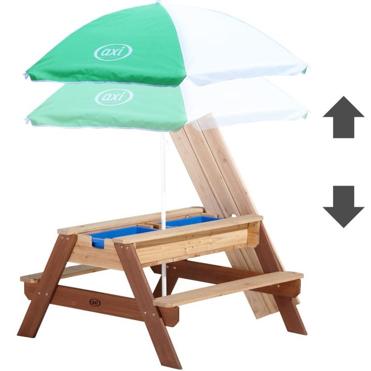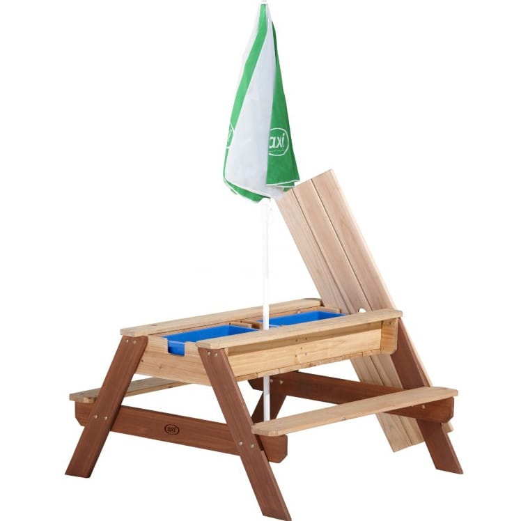 Stół piknikowy Nick od renomowanej marki AXI to wielofunkcyjny stół, który ma tajne pomieszczenie z dwoma niebieskimi pojemnikami pod zdejmowanym blatem. Te niebieskie pojemniki można wypełnić piaskiem i/lub wodą, ale oczywiście można w nich przechowywać również zabawki. Dodatkowo pojemniki są wyjmowane, dzięki czemu można je łatwo wyczyścić. Klasyczne połączenie piasku i wody zawsze sprawdza się u dzieci! W mgnieniu oka zamienisz stół z piaskiem i wodą w stół piknikowy, na którym dzieci będą mogły tworzyć, rysować lub cieszyć się smakołykami.