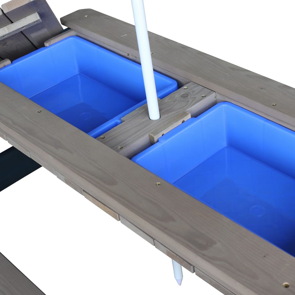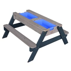 Stolik piknikowy Nick dla dzieci firmy Axi sprawi Twoim pociechom wielką radość. Dzieci mają miejsce, żeby wygodnie usiąść, bawić się i malować. Maluchy będą miały wygodny kącik tylko dla siebie. A jeśli znudzi im się spokojne siedzenie, po zdjęciu blatu stolika, zestaw przeistacza się w piaskownicę lub stolik wodny. Mamy dwie komory, które przystosowane są zarówno do piasku, jak i do wody. Dzięki temu z jednej strony dzieci mogą budować zamki z piasku, a z drugiej mogą bawić się zabawkowymi łodziami. Stolik świetnie sprawdzi się w ogrodzie, na tarasie oraz balkonie.