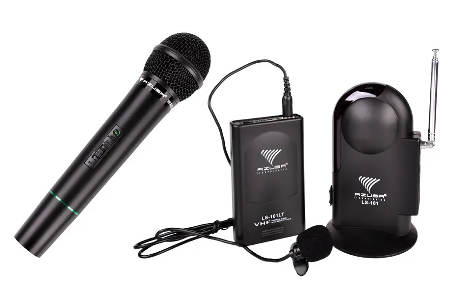W zestawie dwa mikrofony, które można używać zamiennie. Jeden do reki drugi dopinany do ubrania z klipsem na pasek.