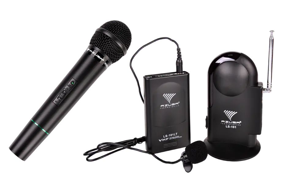W zestawie dwa mikrofony, które można używać zamiennie. Jeden do reki drugi dopinany do ubrania z klipsem na pasek.