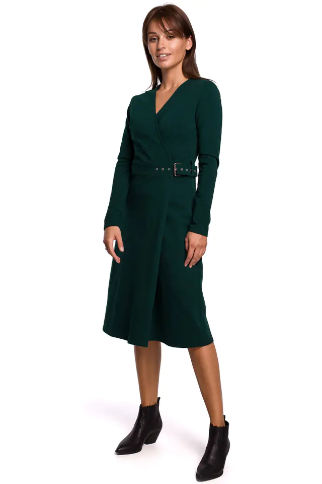 B161 Sukienka z kopertową górą - ciemnozielona kolor ciemna zieleń, rozmiar L