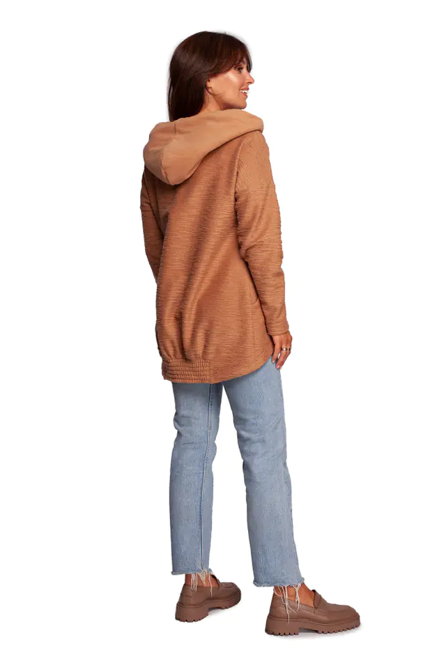 B249 Bluza z kominem i kapturem - cynamonowa kolor brąz, rozmiar M