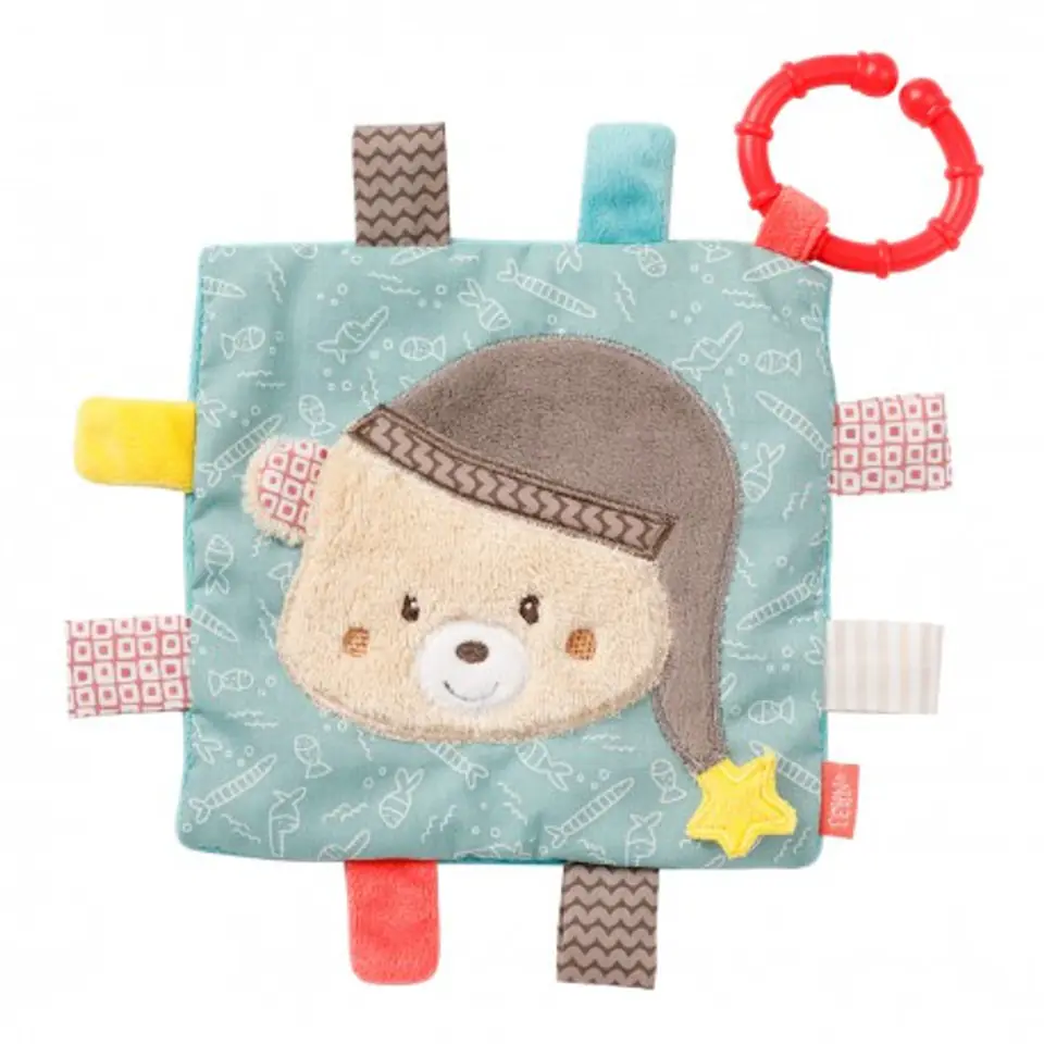 Zawieszka, Szmatka Sensoryczna, Miś, z kolekcji: Bruno Szmatka sensoryczna Miś, z kolekcji: Bruno , będzie doskonałym towarzyszem dla Twojego maleństwa, Super miękka i urocza, o pięknych delikatnych kolorach, dzięki aksamitnym w dotyku materiałom z jakich jest wykonana, oraz ukrytej piszczałce, z pewnością wzbudzi wielkie zainteresowanie, Umożliwia ciekawskim maluchom badanie świata poprzez oglądanie, naciskanie, głaskanie lub szarpanie wystających elementów o różnej fakturze i kolorze, Dzięki praktycznemu pierścieniowi w kształcie litery C nadaje się do zawieszenia wszędzie i szybko stanie się ulubioną zabawką Twojego dziecka, Rozwija i pobudza zmysły, Doskonali zdolności motoryczne, Posiada wewnątrz szeleszczący papier i piszczałka, Aksamitna w dotyku, Do zawieszenia na łóżeczku, wózku, nosidełku itp, Można prać, Rozmiar: 21 x 21 cm, Wszystkie zabawki niemieckiej marki FEHN są bezpieczne dla dzieci od 0 lat, Wykonane są z najlepszej jakości materiałów, Przetestowana pod kątem bezpieczeństwa przez niezależne instytuty testowe, 60614