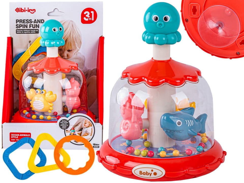 Bączek Kolorowa Karuzela Z Kulkami Ośmiornica Zwierzęta Morskie + Obręcze