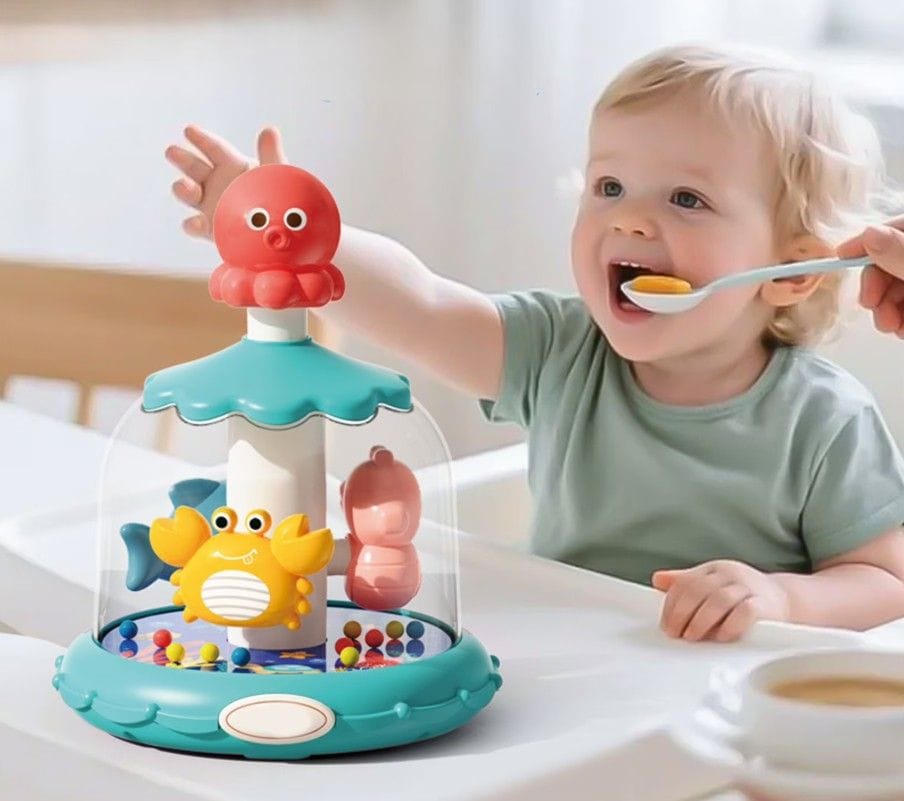 Zadbaj o prawidłowy rozwój twojego maluszka przy sporej dawce wciągającej zabawy. Dzieci uwielbiają przecież kolory, ciekawe tekstury oraz ruchome elementy. Nasza sensoryczna karuzela łączy w sobie to wszystko!