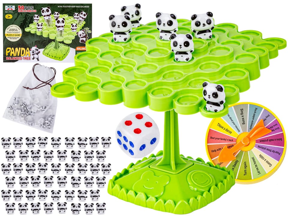 Zabawa zestawem jest bardzo prosta. Należy ułożyć taką ilość pand na drzewku aby było ono zrównoważone.