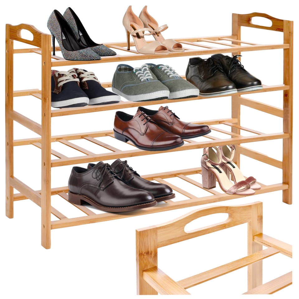 Bambusowy regał na buty 4 poziomy NeriaPrzeznaczenie: przedpokój | Kolory: naturalny bambus Wykonany z naturalnego bambusa regał na cztery półki. Wyposażono go w rączki do wygodnego transportu w razie potrzeby.Zmieści się na nim około 12 par butów. Wymiary produktu Wysokość 67,5 cm Szerokość 68,5 cm Głębokość 24 cm Odległość między półkami 18 cm Waga: 2,5 kg Informacje dodatkowePrzedstawione kolory należy traktować poglądowo - mogą odbiegać od rzeczywistych ze względu na różne ustawienia monitorów oraz proces obróbki zdjęć. Rzeczywiste wymiary mogą się różnić od podanych wyżej. Tolerancja błędów może wynosić +/- 5%. Marka:GockowiakKod EAN:5902340312506Kolor:naturalnyMateriał: bambusWysokość całkowita:67,5 cmSzerokość:68,5 cmGłębokość:24 cm