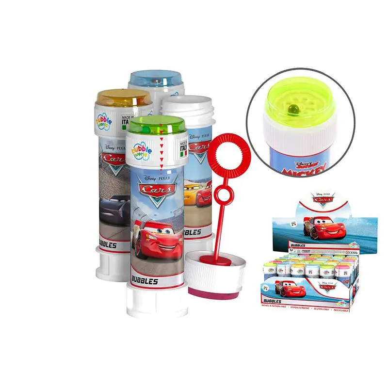 Bańki mydlane z postaciami z ulubionych bajek dla dzieci Ilość płynu w opakowaniu 60 ml., Na każdej nakrętce znajduje się gra - labirynt z piłeczką, Wym. Bańki 11,5 x 35 cm. 3+ Wzór wysyłany jest losowo 490009