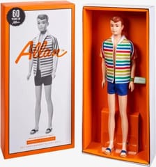 W 1964 roku Mattel przedstawił światu kumpla Kena, Allana. Aby uczcić 60. rocznicę tego doniosłego wydarzenia, stworzyliśmy kolekcjonerską reprodukcję odjazdowego plażowego wyglądu lalki Allana z Silkstone: kolorową, pasiastą kurtkę z granatowymi kąpielówkami i pasującymi sandałami. Ma również rzeźbione rude włosy i zabytkową zawieszkę na nadgarstku, tak jak oryginał. Lalka Allan z okazji 60. rocznicy Projektant: Bill Greening Etykieta: Gold Rzeźba twarzy: Allan Typ ciała: Silkstone Zawiera certyfikat autentyczności