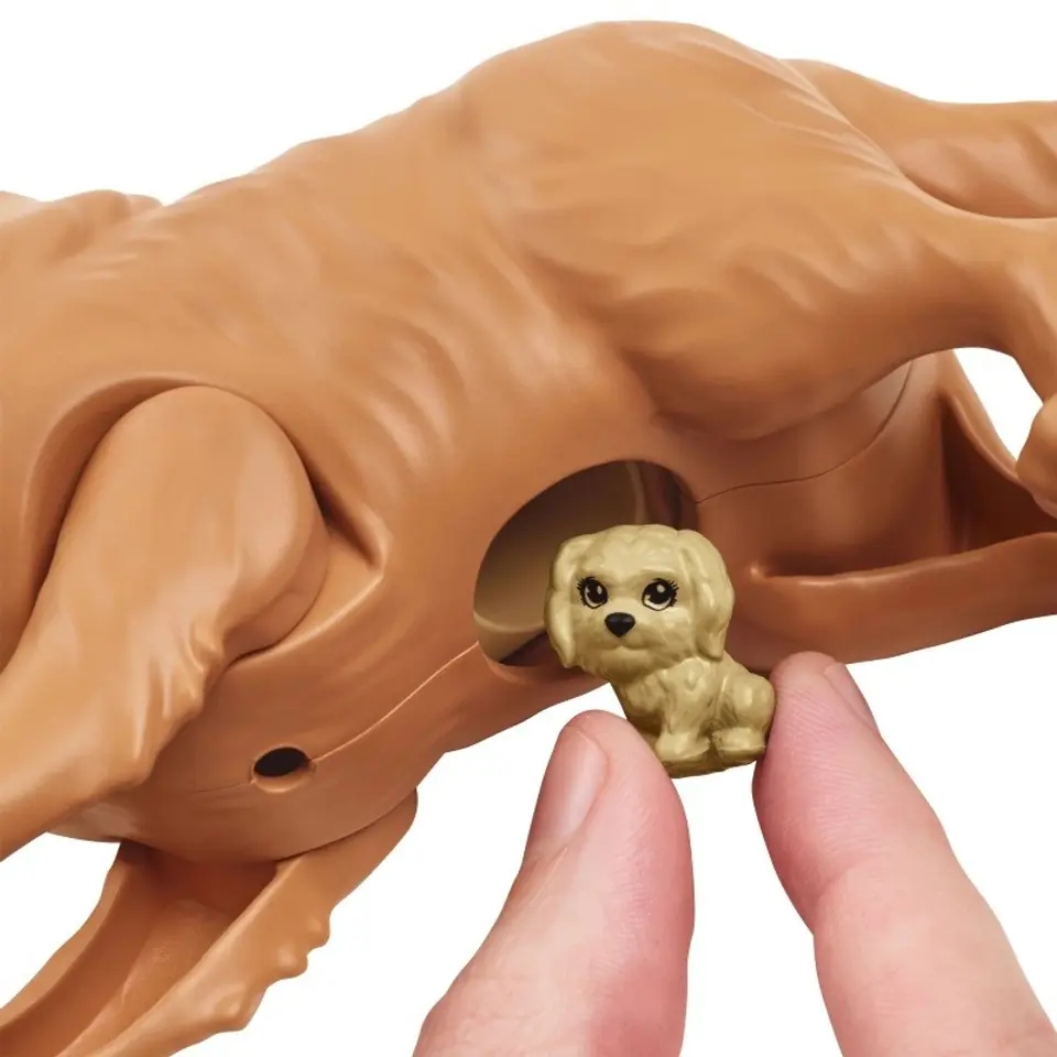 Naciśnij plecy psiej mamy, aby wraz z lalką Barbie(R) pomóc pieskom przyjść na świat, jeden po drugim.