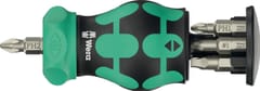 Bardzo mała rękojeść z bardzo krótkim uchwytem do bitów idealnie nadaje się do trudno dostępnych miejsc. Drobnozębna grzechotka zintegrowana z rękojeścią zapewnia szybką pracę. Intuicyjna zmiana kierunku pracy: obrót pierścienia przełączającego w prawo powoduje zmianę kierunku pracy w prawo, obrót pierścienia przełączającego w lewo powoduje zmianę kierunku pracy w lewo. Mechanizm zapadkowy można zablokować w pozycji 0 dla zapewnienia precyzyjnej pracy. Z 6 ciągliwo-twardymi bitami do uniwersalnego zastosowania. Silny magnes stały w uchwycie na bity zapewnia ich niezawodne mocowanie. 2-komponentowa rękojeść Kraftform z praktyczną kombinacją strefy twardej i miękkiej umożliwia pewny chwyt i precyzyjną pracę.