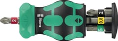 Bardzo mała rękojeść z bardzo krótkim uchwytem do bitów idealnie nadaje się do trudno dostępnych miejsc. Drobnozębna grzechotka zintegrowana z rękojeścią zapewnia szybką pracę. Intuicyjna zmiana kierunku pracy: obrót pierścienia przełączającego w prawo powoduje zmianę kierunku pracy w prawo, obrót pierścienia przełączającego w lewo powoduje zmianę kierunku pracy w lewo. Mechanizm zapadkowy można zablokować w pozycji 0 dla zapewnienia precyzyjnej pracy. 6 bitów BiTorsion charakteryzujących się długą żywotnością, ciągliwo-twarde, do uniwersalnego zastosowania. System wyszukiwania narzędzi Take it easy: z oznaczeniem kolorystycznym profilu i rozmiaru ułatwiającym znalezienie odpowiedniego bitu. Silny magnes stały w uchwycie na bity zapewnia ich niezawodne mocowanie. 2-komponentowa rękojeść Kraftform z praktyczną kombinacją strefy twardej i miękkiej umożliwia pewny chwyt i precyzyjną pracę.