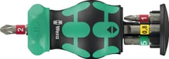 Bardzo mała rękojeść z bardzo krótkim uchwytem do bitów idealnie nadaje się do trudno dostępnych miejsc. Drobnozębna grzechotka zintegrowana z rękojeścią zapewnia szybką pracę. Intuicyjna zmiana kierunku pracy: obrót pierścienia przełączającego w prawo powoduje zmianę kierunku pracy w prawo, obrót pierścienia przełączającego w lewo powoduje zmianę kierunku pracy w lewo. Mechanizm zapadkowy można zablokować w pozycji 0 dla zapewnienia precyzyjnej pracy. 6 bitów BiTorsion charakteryzujących się długą żywotnością, ciągliwo-twarde, do uniwersalnego zastosowania. System wyszukiwania narzędzi Take it easy: z oznaczeniem kolorystycznym profilu i rozmiaru ułatwiającym znalezienie odpowiedniego bitu. Silny magnes stały w uchwycie na bity zapewnia ich niezawodne mocowanie. 2-komponentowa rękojeść Kraftform z praktyczną kombinacją strefy twardej i miękkiej umożliwia pewny chwyt i precyzyjną pracę.