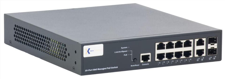 | Opis: | Barox Switches for 19"- and table mounting with management, 8x10/100/1000TX with PoE+, 2xCombo (100/1000SFP or 10/100/1000TX), L2/3 Static |