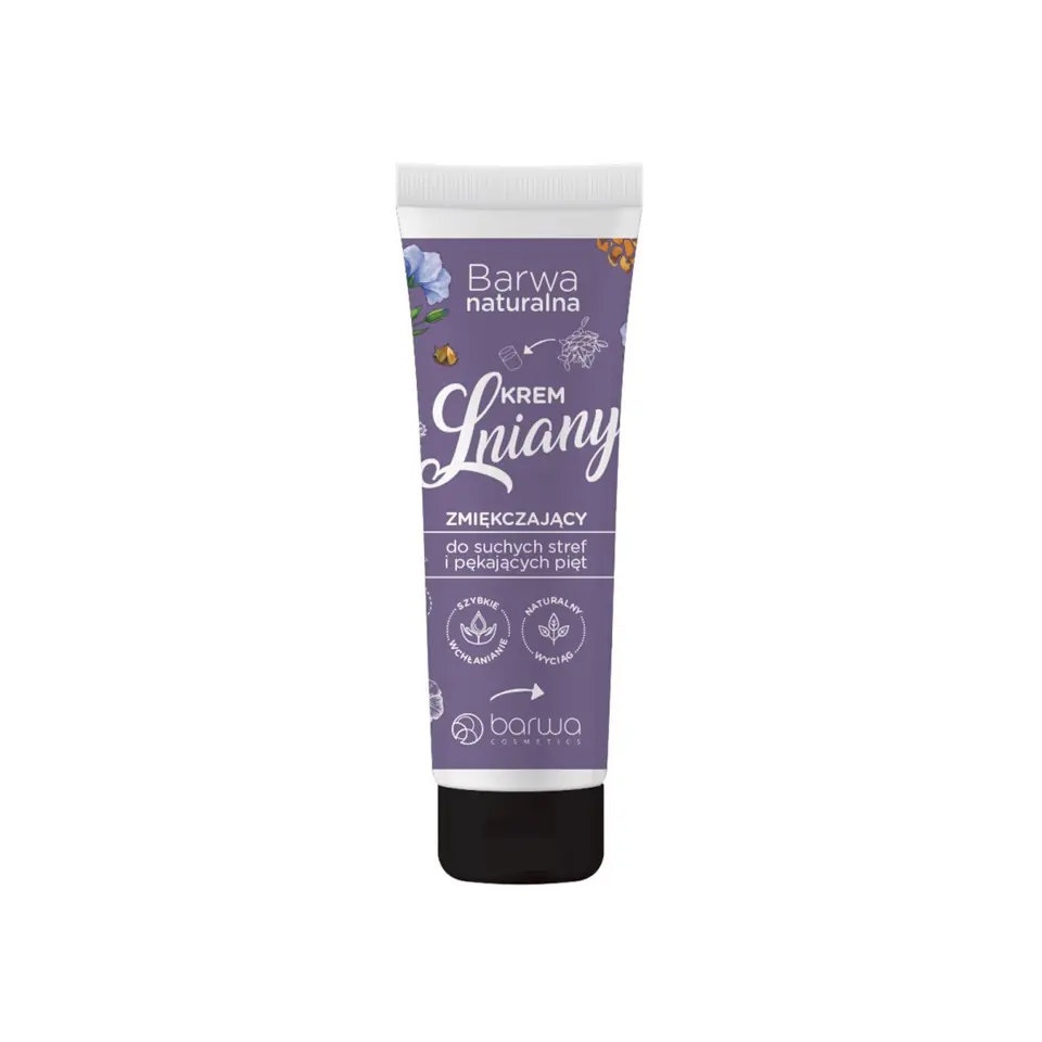 Zmiękczający krem lniany do suchych stref i pękających pięt. Receptura oparta na dobroczynnym działaniu naturalnego wyciągu z lnu, który zapewnia regenerację pękającym piętom, wygładzenie szorstkiej skóry oraz nawilżenie suchych stref: stóp, kolan i łokci. Krem inspirowany domowym zabiegiem zmiękczania i regenerowania suchej skóry oraz pękających pięt żelem z zaparzonych nasion lnu. Receptura kremu wzbogacona została o zmiękczającą lanolinę, nawilżającą glicerynę, regenerujący kompleks witamin oraz wygładzający mocznik. Krem szybko się wchłania, nie pozostawia tłustej ani lepkiej warstwy.