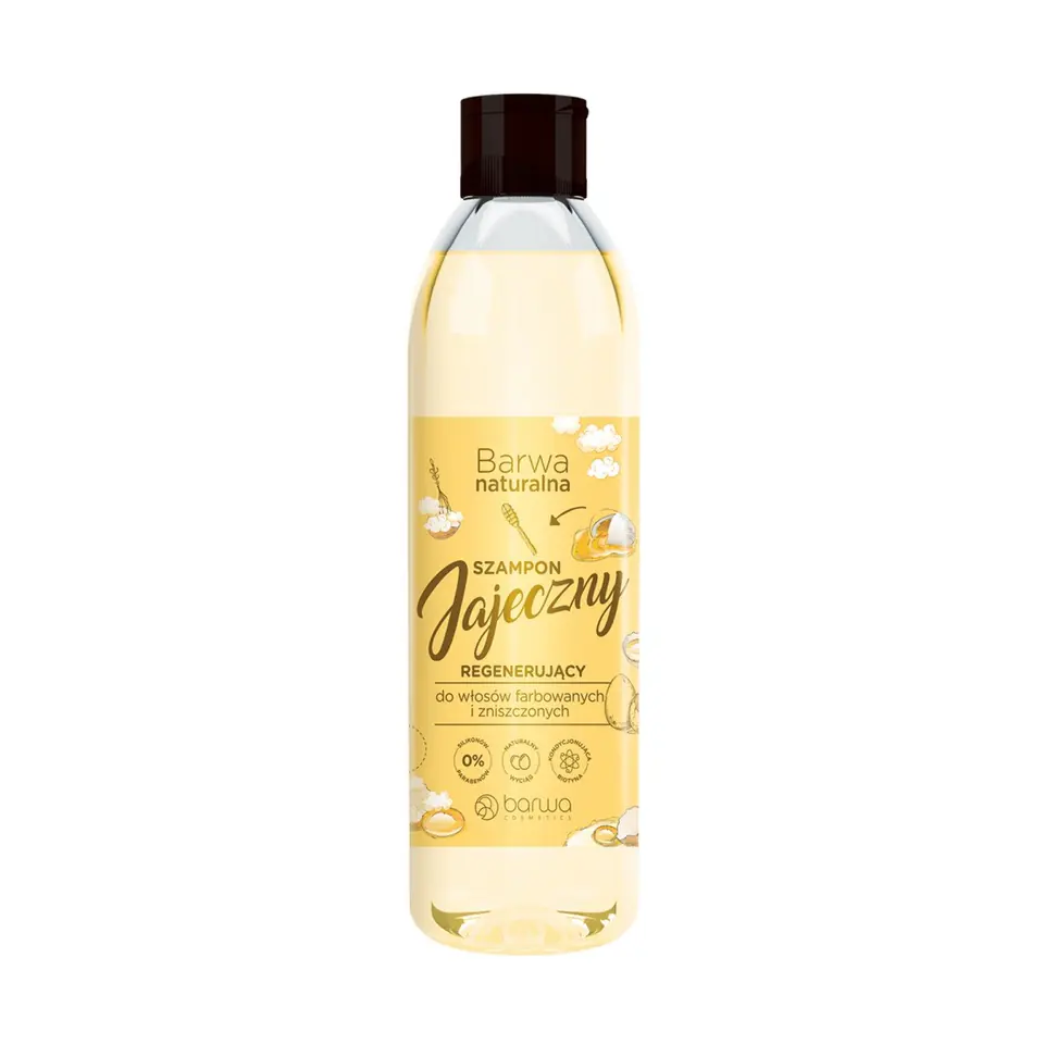 Regenerujący szampon jajeczny. Receptura oparta na dobroczynnym działaniu naturalnego wyciągu z protein jajka, który zapewnia rekonstrukcję włosom zniszczonym czesaniem, częstym myciem, czynnikami zewnętrznymi oraz zabiegami fryzjerskimi. Łagodzi drażniące działanie składników myjących i koloryzujących dla skóry głowy. Szampon inspirowany domowym zabiegiem regenerujących maseczek jajecznych, które nadają włosom lśniący i zdrowy wygląd. Zwieńczeniem receptury jest kondycjonująca biotyna, która widocznie poprawia stan włosów i skóry głowy. Szampon nie zawiera parabenów i silikonów.