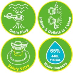 Basen jest wyjątkowo łatwy do nadmuchiwania i opróżniania, co pozwala na szybkie przygotowanie go do użytku lub złożenie po zakończonej zabawie. Prosta konstrukcja sprawia, że jego montaż zajmuje tylko kilka minut, a po spuszczeniu powietrza zajmuje niewiele miejsca, co ułatwia przechowywanie. Możesz go łatwo przenosić, zabierać na wakacje lub ustawiać w dowolnym miejscu, gdzie tylko zapragniesz relaksu i zabawy.