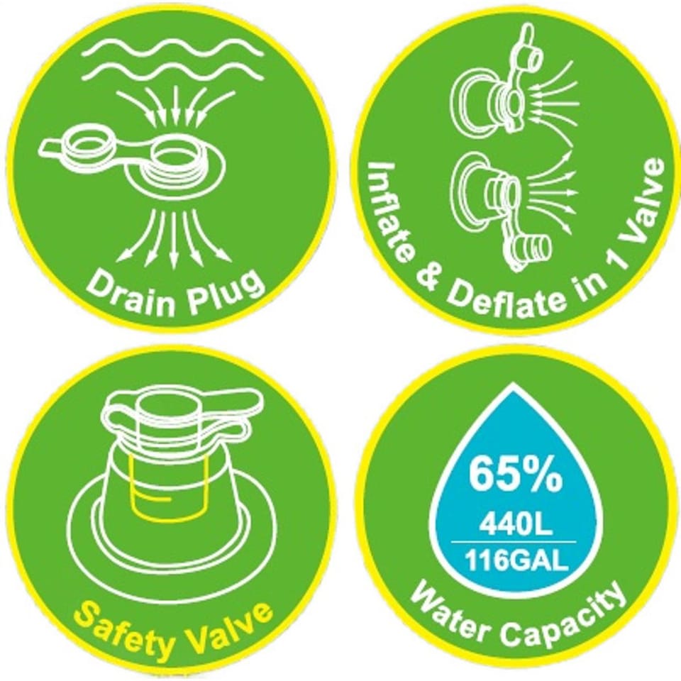 Konstrukcja oparta na dwóch solidnych pierścieniach zapewnia stabilność basenu, co minimalizuje ryzyko jego przewrócenia lub przypadkowego wypuszczenia powietrza. Wzmocnione pierścienie skutecznie utrzymują formę basenu nawet podczas intensywnej zabawy i dynamicznego użytkowania. Dzięki temu dzieci mogą bezpiecznie bawić się, a dorośli mogą odpoczywać bez obaw o nagłą utratę stabilności.
