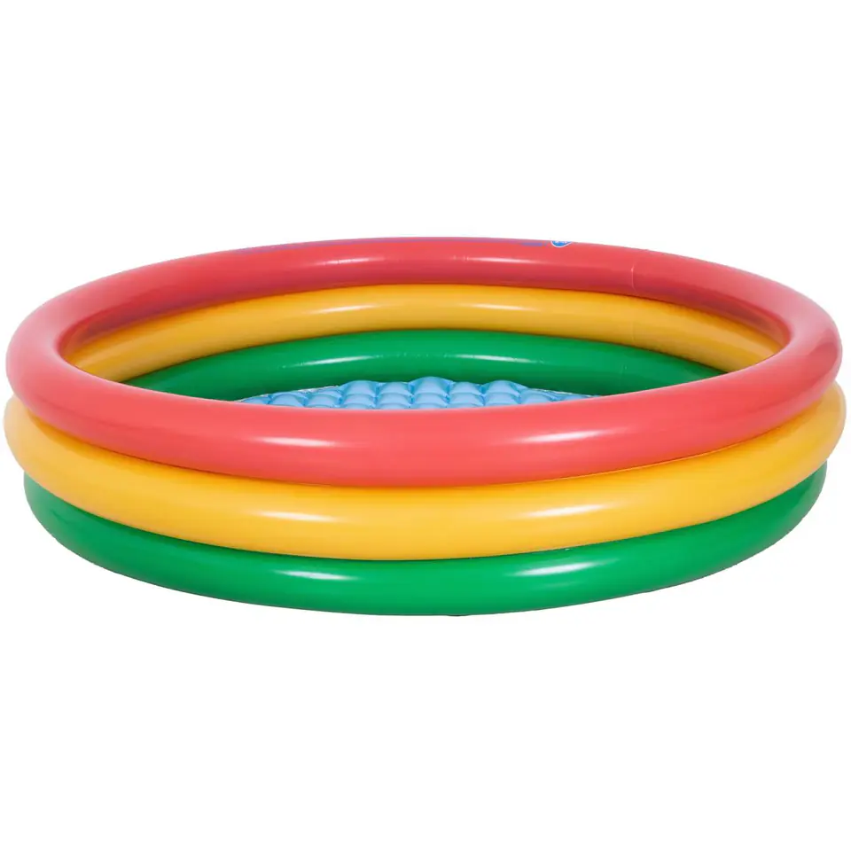 Basen posiada nadmuchiwane dno i miękkie obrzeże składające się z trzech osobno nadmuchiwanych pierścieni, dzięki temu zapewnia komfort i bezpieczną zabawę.