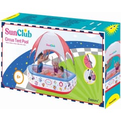 Twoje dziecko to istny wulkan energii? BASEN DZIECIĘCY CIRCUS Z DASZKIEM 223X208X163CM 51124 będzie idealny dla Twojej pociechy do zabawy latem w wodzie, a po sezonie do zabawy np.: w plastikowych kulkach!
