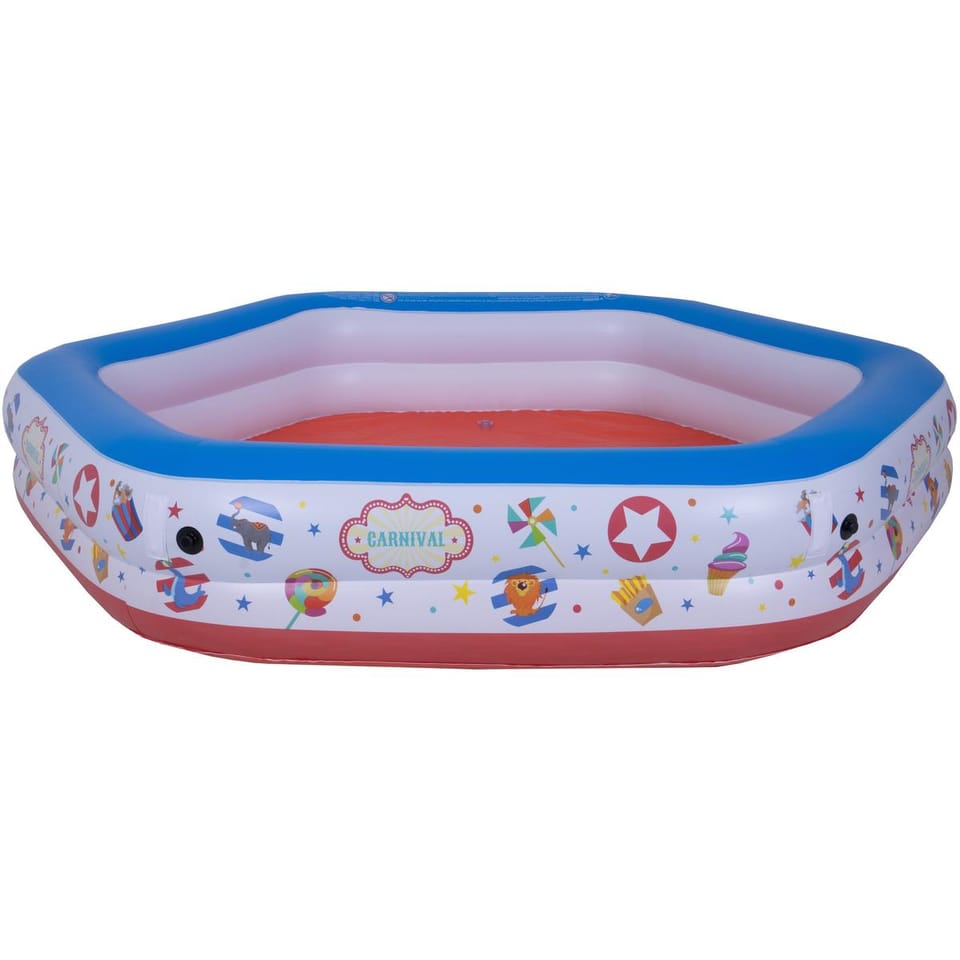 - Wymiary napompowanego basenu: 223 x 208 x 163 cm (szer. x gł. x wys.)Wysokość brodzika: 42 cmPojemność: 550 l, przy napełnieniu do 65 %Wymiary opakowania (color box): 33 x 8 x 62 cm (szer. x wys. x gł.)Waga netto ok.: 4,9 kgWaga brutto ok: 5 kgMateriał: PVC o grubości 0,25 i 0,28 mmKolor: WielokolorowyKorek spustowy wody: TakZestaw naprawczy: TakPompa filtrująca: NieMata zabezpieczająca: NieNadmuchiwane dno: NiePrzeznaczenie: powyżej 6 latZgodny z normą EN 16927