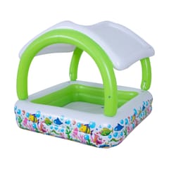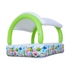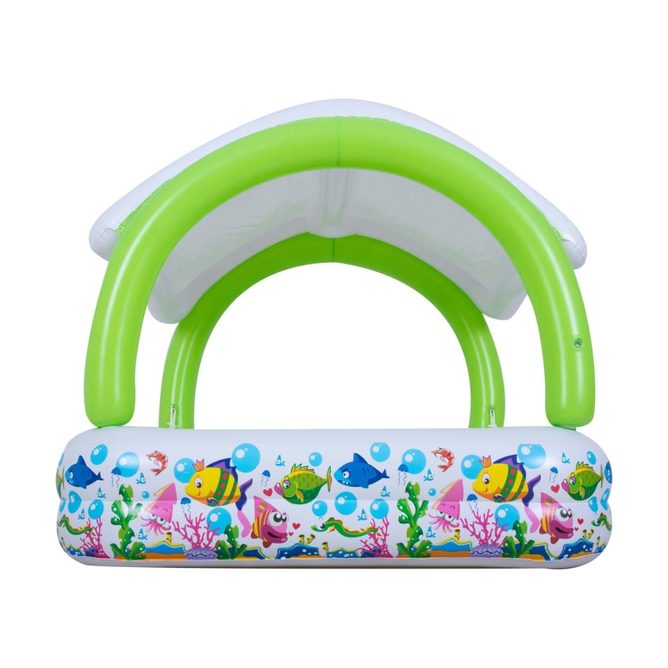 Napompujesz go i rozłożysz w bardzo szybki i łatwy sposób, tylko przy użyciu pompki. Dobrej jakości materiał z którego jest wykonany, nie odbarwia się, ani pod wpływem promieni słonecznych, ani chemii używanej do utrzymania czystości. Wielkość basenu pozwoli Twojemu dziecku na pluski w orzeźwiającej wodzie przez cały dzień, a daszek umieszczony nad taflą wody ochroni przed mocnym słońcem. Nic nie przynosi większej ulgi latem niż kąpiel w letniej wodzie. Nie zwlekaj z zakupem! BASEN DZIECIĘCY DMUCHANY Z DASZKIEM 143X143X123CM pokochało już wiele rodzin!