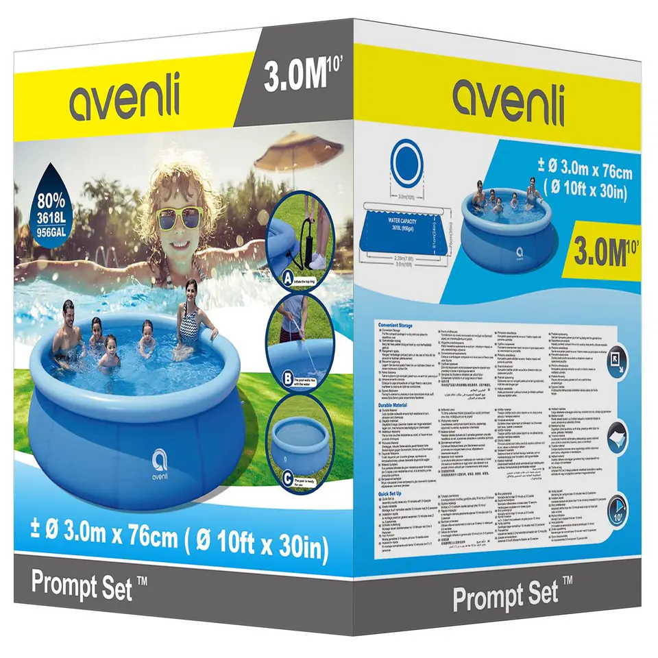 - Wymiary po napompowaniu i napełnieniu woda w 80 %ok.: 300 x 76 cm (śr. x wys.)Pojemność: 3618L przy napełnieniu do 80% wodyMateriał: 3 warstwowe PVCKolor: NiebieskiZestaw naprawczy: TakPompa filtrująca: NieMata zabezpieczająca: NieOdpowiedni dla dzieci powyżej 6 latMarka: AvenliWaga netto: 7 kgWaga brutto: 7,760 kgOpakwoanie (karton): 29 x 25,5 x 33 cm ( szer. x gł. x wys)