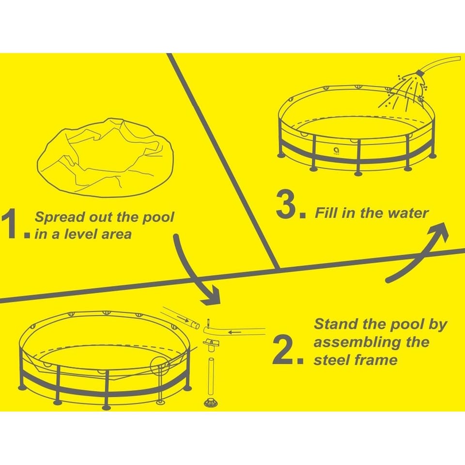 Montaż basenu jest niezwykle prosty i nie wymaga specjalistycznych narzędzi. Stalowa rama i słupki szybko łączą się w stabilną konstrukcję, która zapewnia bezpieczeństwo i wygodę użytkowania. Gotowy do napełnienia wodą w krótkim czasie!