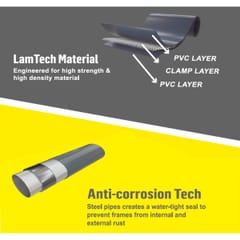 Basen wyposażony jest w wzmocniony stelaż z technologią ANTI-CORROSION, która zapewnia doskonałą ochronę przed rdzewieniem i uszkodzeniami spowodowanymi wilgocią. Dzięki temu basen zachowuje swoją wytrzymałość i estetyczny wygląd nawet po wielu sezonach użytkowania.