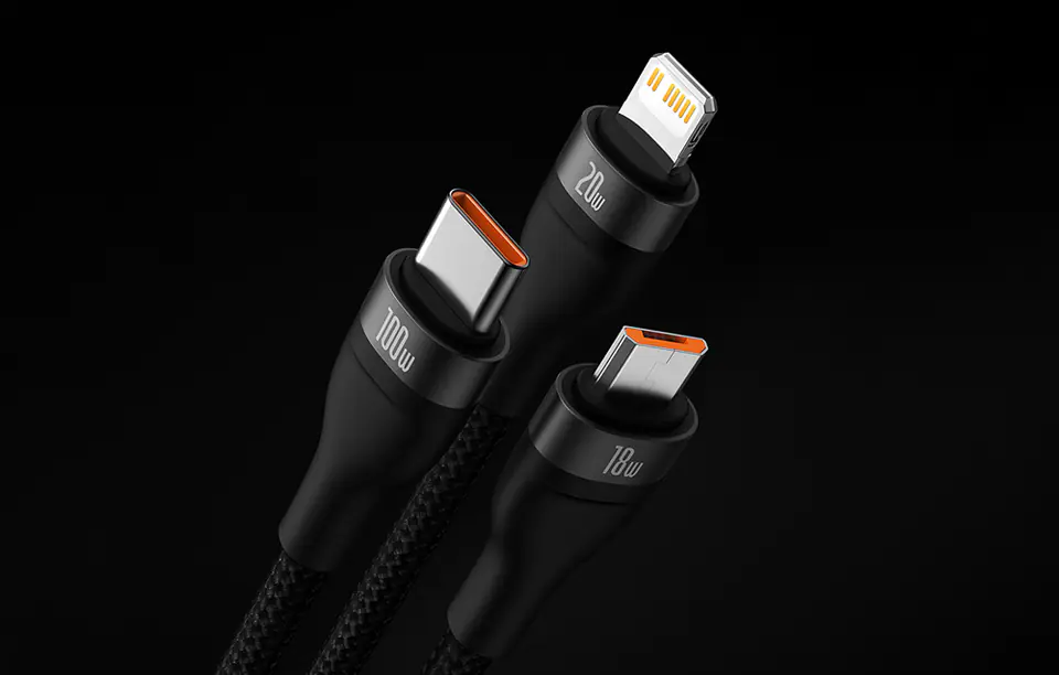 Baseus Flash Series II kabel USB Typ C - USB Typ C / Lightning / micro USB 100 W 1,5 m czarny CASS030201