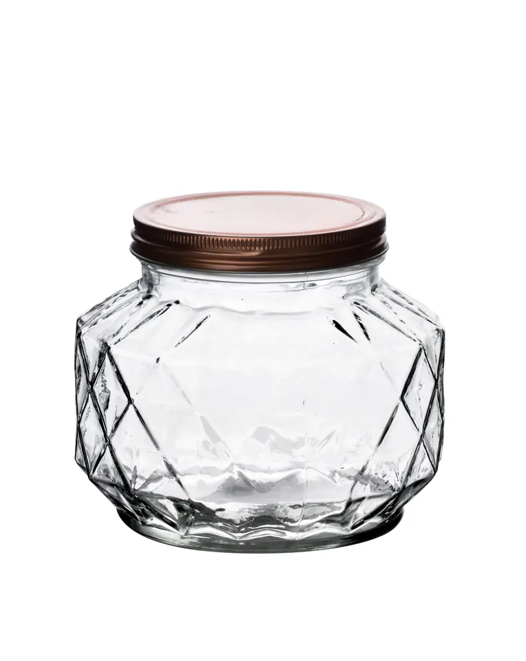 Szklany słoik wykonany ze szkła sodowego z serii BASIC KITCHEN marki ALLESKEN.Przedstawiamy nasz wspaniały diamentowy szklany słoik o pojemności 1,4l, uosobienieelegancji i praktyczności! Ten pięknie zaprojektowany słoik został wykonany z najwyższą precyzją i starannością, aby wnieść wyrafinowanie do Twojej kuchni i dodać odrobinę klasy do Twoich potrzeb w zakresie przechowywania. Dzięki dużej pojemności 1,4L, ten słoik jest idealny do przechowywania asortymentu smakołyków, od kolorowych cukierków po niebiańskie domowe przetwory.wymiary: 11x16x14cmpojemność: 1,4Lwaga: 622g