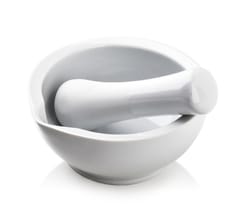 Możdzierz porcelanowy z serii BASIC.Moździerz jest niezbędnym elementem wyposażenia każdej kuchni. Dzięki niemu możesz przygotować wiele aromatycznych i pysznych dań. Uniwersalny wygląd sprawia, że pasuje praktycznie do każdego wystroju kuchni. Produkt jest bardzo łatwy w utrzymaniu czystości. Wykonany z najwyższej jakości materiałów odpornych na uszkodzenia. Dzięki niewielkiemu rozmiarowi nie zajmie dużo miejsca w naszej kuchni i z pewnością będzie ozdobą w Twojej kuchni! Produkt przeznaczony do kontaktu z żywnością.Materiał: porcelanaII GATUNEKwymiary: 14xh6.5cmdługość tłuczka: 14cmszerokość: 4cm