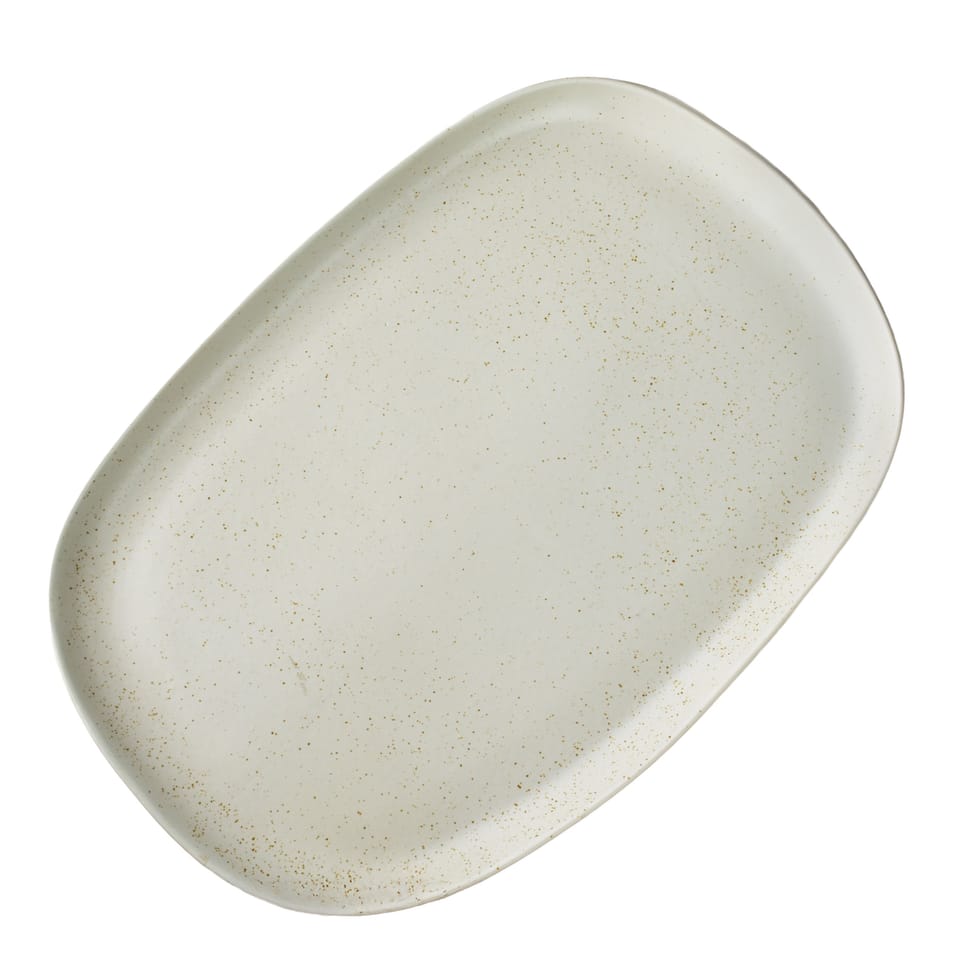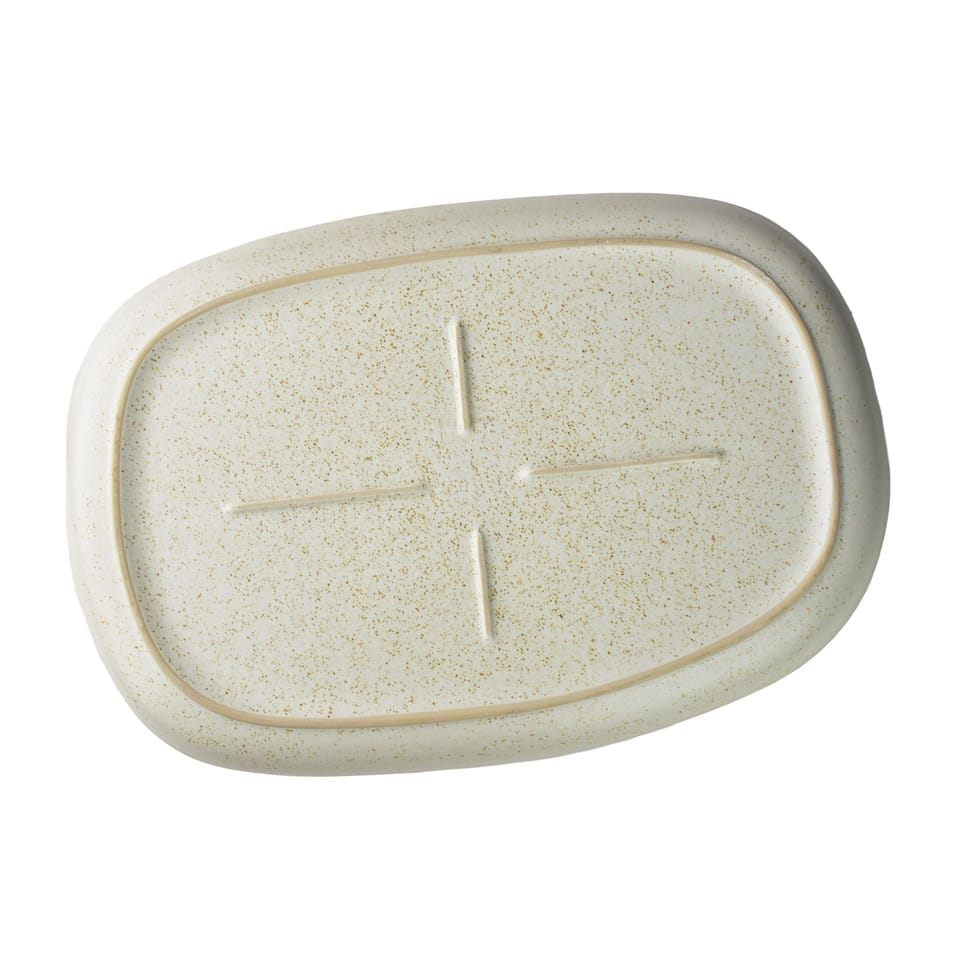 Półmisek z serii BASIC NATURE o wymiarach 41 x 28 x 3 cm to wyjątkowe naczynie ceramiczne, które zachwyca swoim naturalnym i niepowtarzalnym charakterem. Wykonany w matowym, kremowym odcieniu, zdobiony jest subtelnym wzorem drobnych kropek, które podkreślają jego rękodzielniczy styl i nadają mu oryginalności. Nieregularny kształt półmiska sprawia, że wyróżnia się na tle klasycznych naczyń, wprowadzając do aranżacji stołu element autentyczności i naturalnej swobody. Dzięki swojej dużej powierzchni doskonale sprawdza się do serwowania dań głównych, przekąsek, sałatek czy kompozycji przystawek, pozwalając na efektowną prezentację potraw. Matowe wykończenie nadaje mu eleganckiej prostoty, a kremowy kolor sprawia, że łatwo komponuje się zarówno z minimalistyczną, jak i bardziej klasyczną zastawą. To naczynie, które łączy praktyczność z wyjątkowym designem, czyniąc każdy posiłek jeszcze bardziej stylowym.