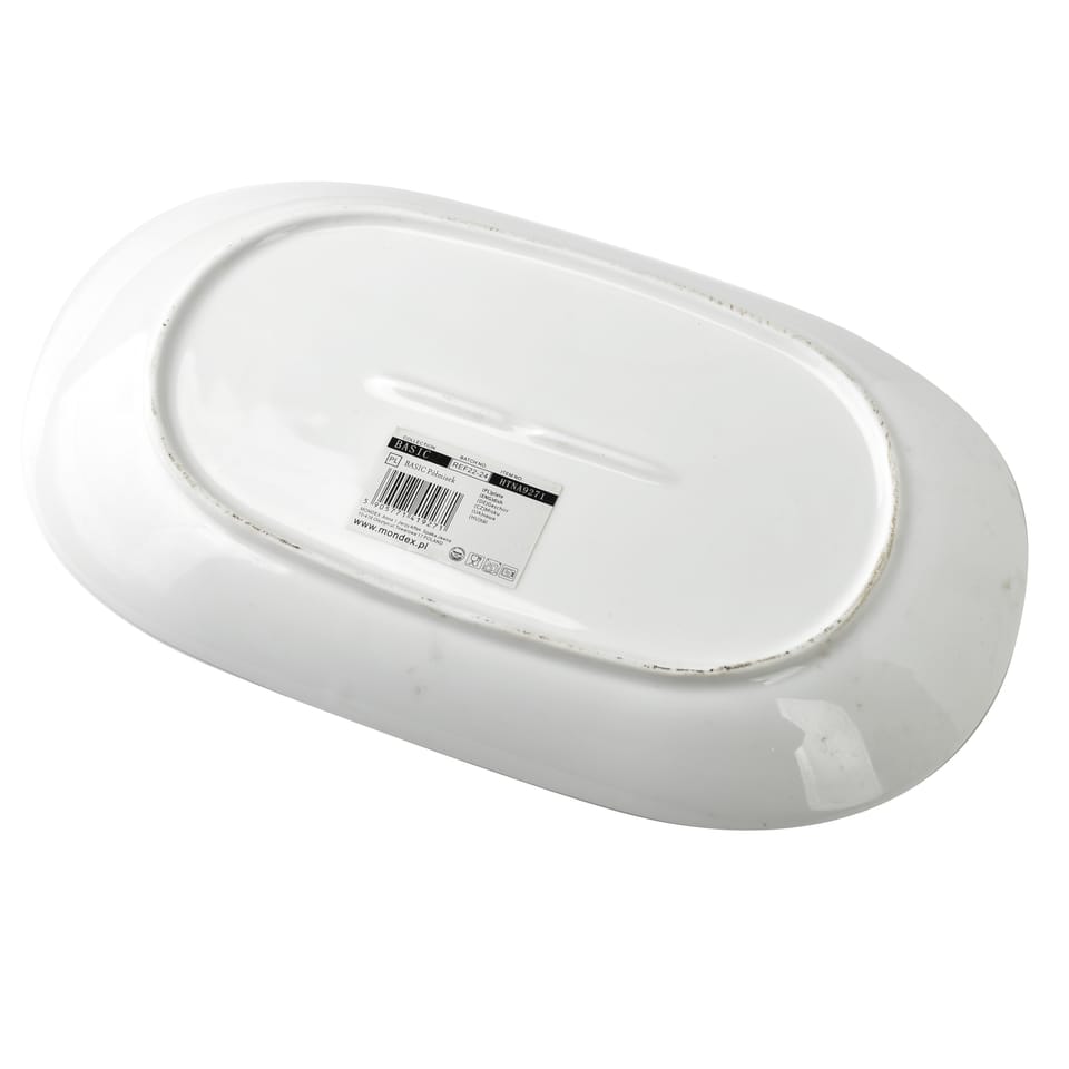 Porcelanowy półmisek BASIC o wymiarach 30 x 19,5 x 3,5 cm to eleganckie i funkcjonalne naczynie, które doskonale sprawdzi się do serwowania różnorodnych potraw. Jego klasyczny, prosty design pasuje do każdej zastawy stołowej, dodając jej subtelnej elegancji. Idealnie nadaje się do podawania mięs, ryb, warzyw, sałatek, a także przekąsek i deserów, zapewniając estetyczną prezentację dań.Wykonany z porcelany półmisek cechuje się trwałością i odpornością na codzienne użytkowanie. Jego gładka powierzchnia ułatwia czyszczenie, a delikatnie uniesione brzegi pomagają w stabilnym ułożeniu potraw.Jako produkt II gatunku, może posiadać drobne niedoskonałości estetyczne, takie jak subtelne przebarwienia lub niewielkie nierówności w szkliwieniu, które nie wpływają na jego funkcjonalność. To uniwersalne i stylowe naczynie, które świetnie sprawdzi się zarówno podczas codziennych posiłków, jak i eleganckich spotkań przy stole.