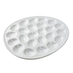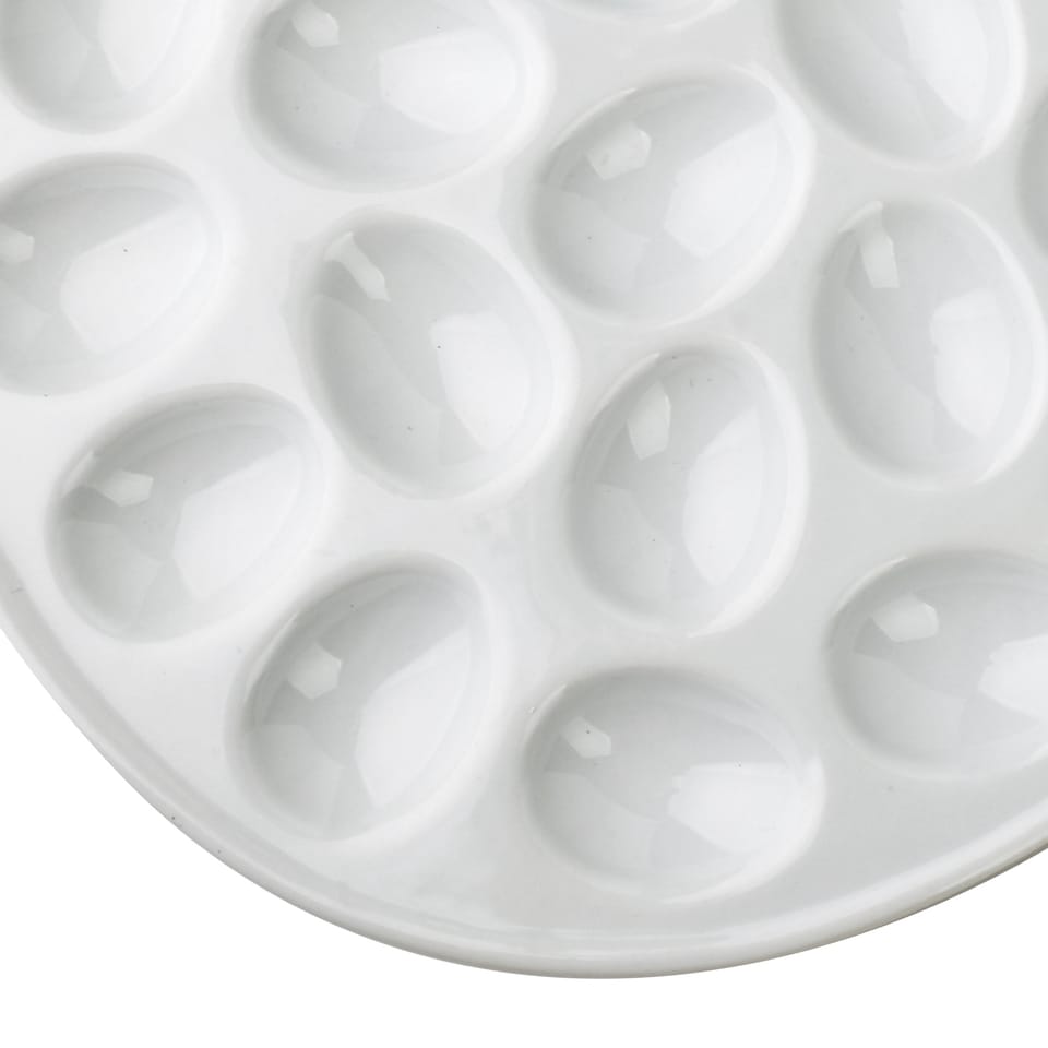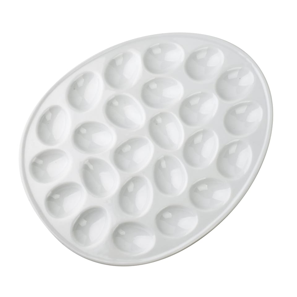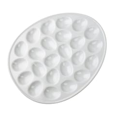 Praktyczny i efektowny w formie, talerz na jajka BASIC marki MONDEX został zaprojektowany z myślą o serwowaniu większej ilości przystawek w elegancki i uporządkowany sposób. Posiada 24 wyprofilowane zagłębienia, które umożliwiają stabilne ułożenie gotowanych lub faszerowanych jajek.Dzięki dużym wymiarom 35 x 28 cm, talerz doskonale sprawdzi się podczas spotkań rodzinnych, wielkanocnych śniadań, przyjęć i bufetów. Owalna forma dodaje mu dekoracyjnego charakteru, jednocześnie ułatwiając podanie większej porcji w wygodny sposób.Cechy produktu:Materiał: porcelanaWymiary: 35 x 28 cm, owalna forma z 24 miejscami na jajkaPojemność: 24 sztuki, idealny na większe przyjęciaDesign: klasyczny, neutralny, pasujący do różnorodnych aranżacji stołuZastosowanie: do serwowania gotowanych jajek, jajek faszerowanych lub przystawekPrzeznaczenie:Do użytku podczas świąt, przyjęć okolicznościowych, rodzinnych spotkań, a także jako element większej zastawy stołowejProdukt drugiego gatunku, co oznacza, że może posiadać drobne niedoskonałości wizualne lub minimalne różnice względem wzorca, nie wpływające na jego użytkowanie.