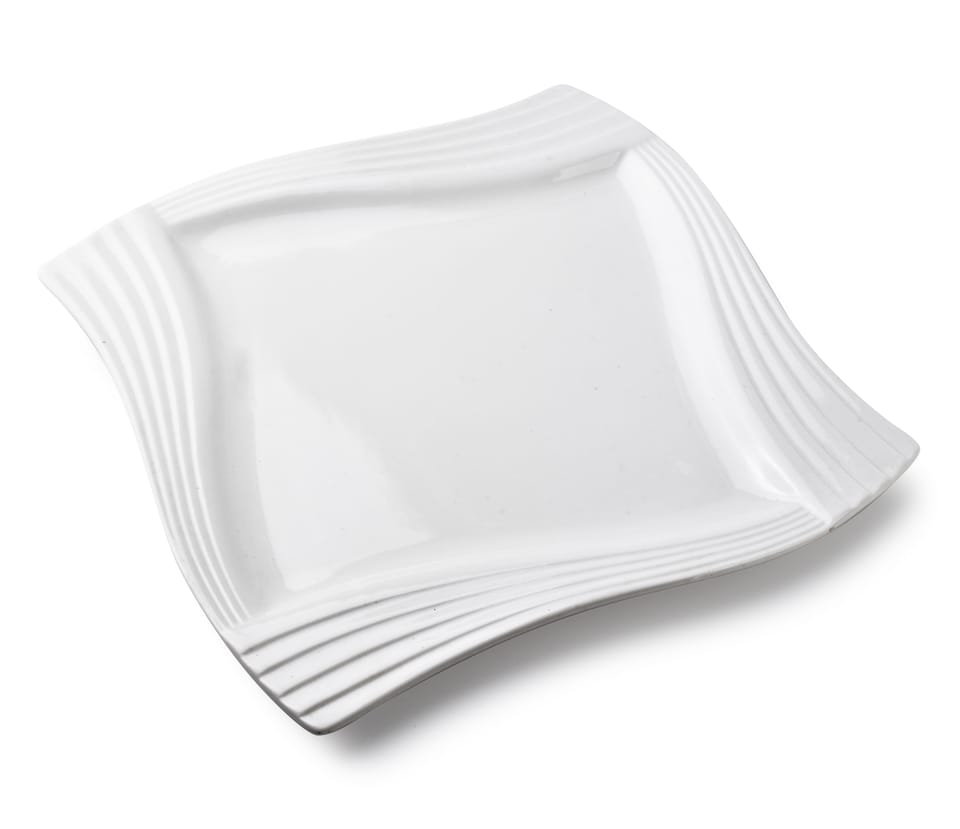 Talerz porcelanowy kwadrat z tłoczeniem na obrzeżach z serii BASIC.II GATUNEK nadaje się do zmywarki i kuchenki mikrofalowejwymiary: 24x32,5xh1,5cmwaga: 660g