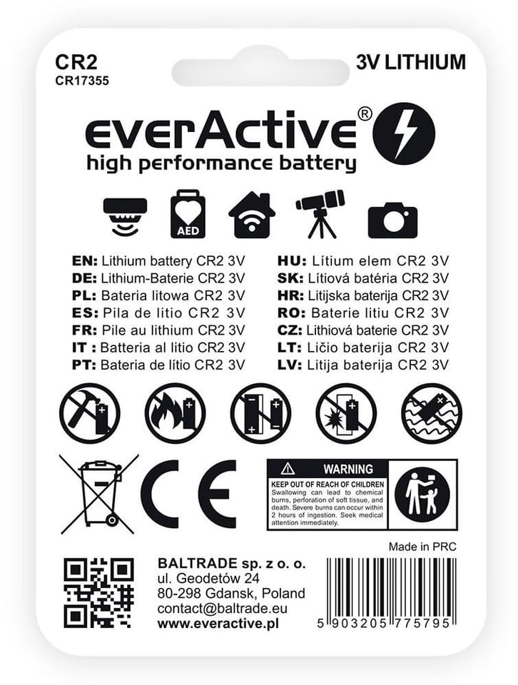 Bateria CR2 everActive (blister 1 szt.) - dane techniczne: