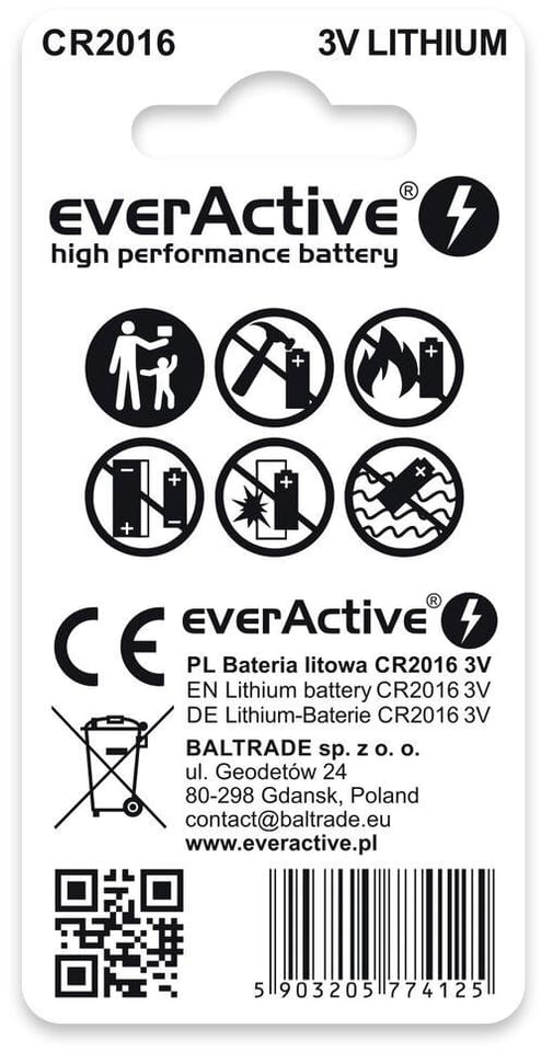 Model: CR20162BLBateria CR2016 everActive (blister 2 szt.) - dane techniczne: