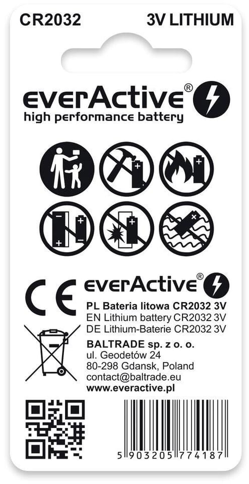 Model: CR20322BLBateria CR2032 everActive (blister 2 szt.) - dane techniczne: