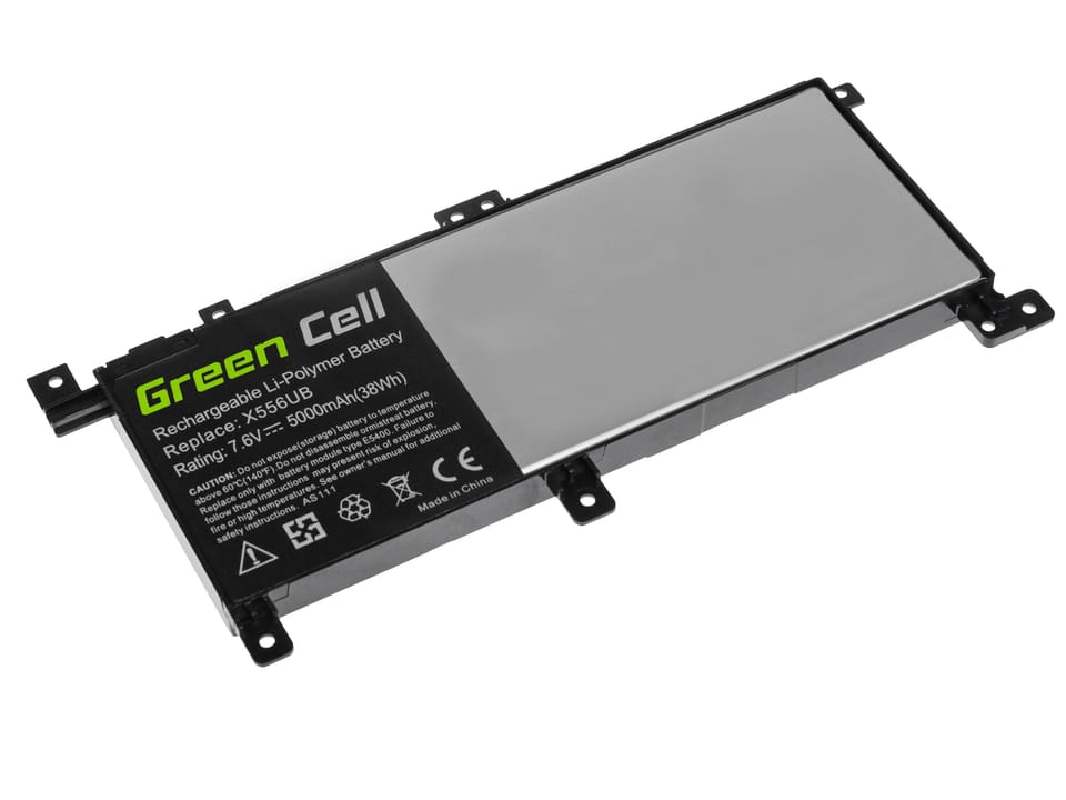 Description: Capacity: 4100 mAhVoltage: 7.6 VNumber of cells: 4Cells technology: Li-PolyWarranty: 12 monthsCells manufacturer: Green CellColour: BlackOverdischarge protection: YesOvercharge protection: YesProduct code: AS111Manufacturer: Green CellSeries: Polymer Compatibility list: Compatible with following battery models : C21N1509 Compatible with following devices : Asus X556UV, Asus X556, Asus X556UA, Asus X556UB, Asus X556UF, Asus X556UJ, Asus X556UQ, Asus X556UR, Asus X556U, Asus X556UA-BB31, Asus X556UA-XX050T, Asus X556UQ-DB51, Asus X556UR-SH51